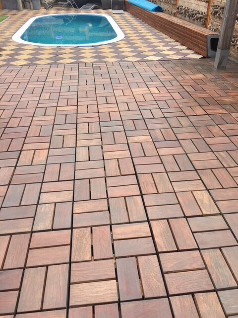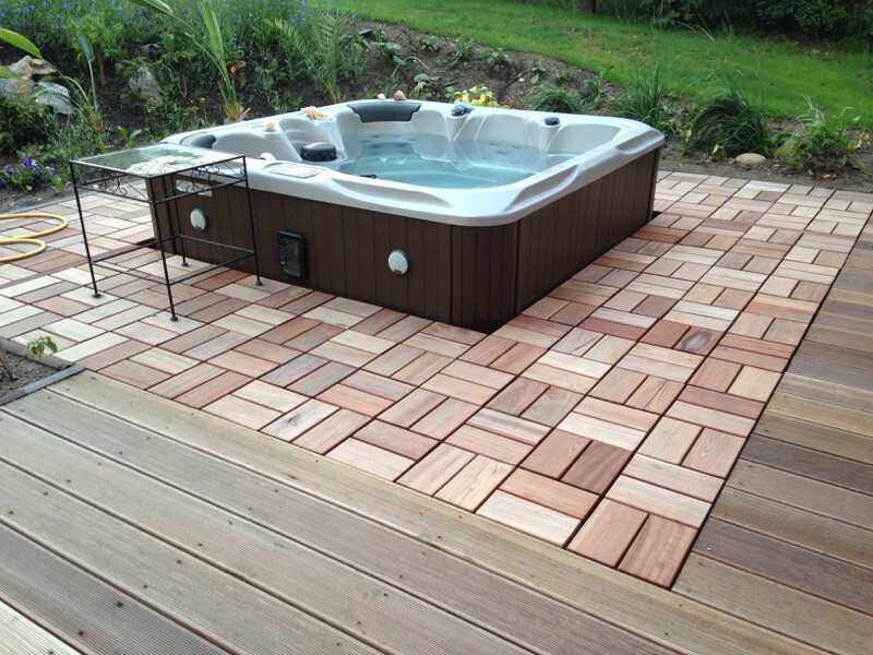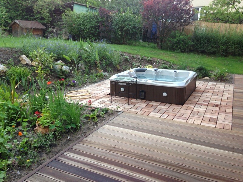 Terasové čtverce různých variant , použitý tropický materiál Jatoba.